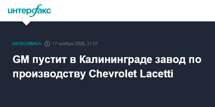 GM пустит в Калининграде завод по производству Chevrolet Lacetti