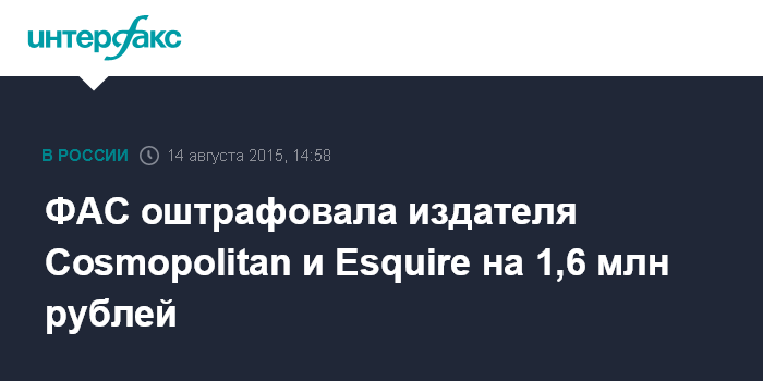 ФАС оштрафовала издателя Cosmopolitan и Esquire на 1,6 млн рублей