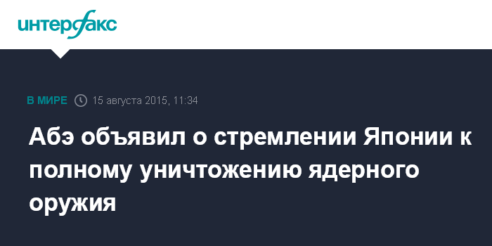 Москва. 15 августа. INTERFAX.RU - Премьер-министр Японии Синдзо Абэ высказался против силового решения международных конфликтов и призвал уважать право народов на самоопределение.