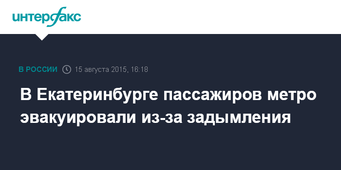Москва. 15 августа. INTERFAX.RU - Пассажиры станции метро "Уральская" в Екатеринбурге эвакуированы из-за задымления, сообщается на сайте ГУ МЧС по Свердловской области.