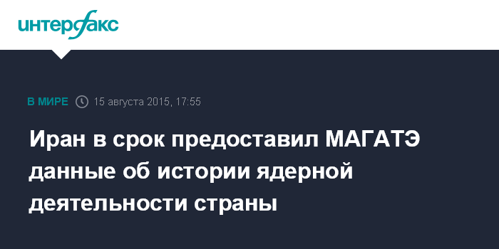 Москва. 15 августа. INTERFAX.RU - Власти Ирана передали МАГАТЭ информацию, касающуюся истории ядерных разработок, сообщается в субботу на сайте организации.