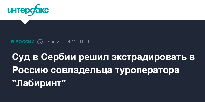 Суд в Сербии решил экстрадировать в Россию совладельца туроператора "Лабиринт"