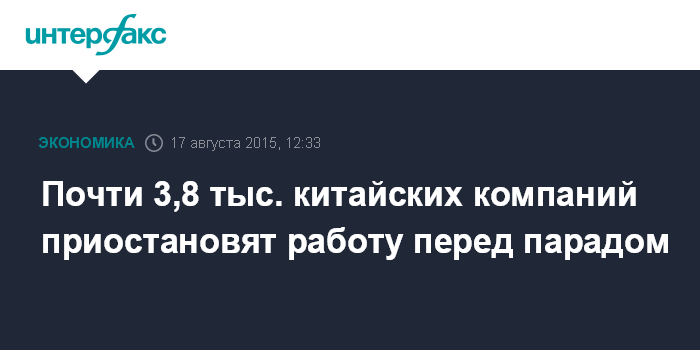 Почти 3,8 тыс. китайских компаний приостановят работу перед парадом