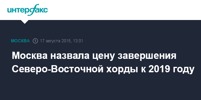Москва. 17 августа. INTERFAX.RU - Строительство Северо-Восточной хорды может быть завершено до 2019 года, заявил в интервью телеканалу "Россия 24" в понедельник заместитель мэра Москвы по вопросам градостроительной политики и строительства Марат Хуснуллин.