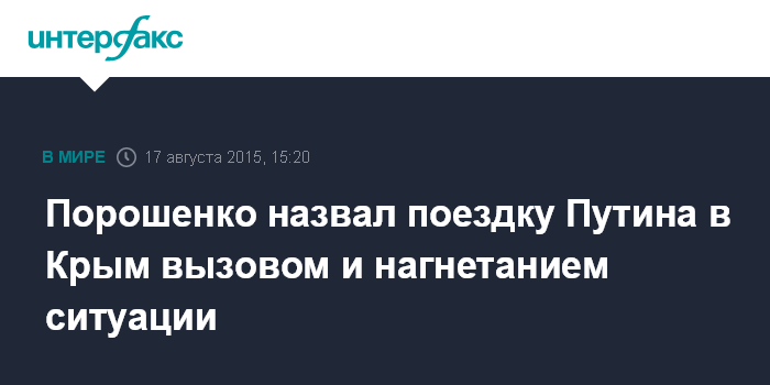 Москва. 17 августа. INTERFAX.RU - Президент Украины Петр Порошенко критически высказался по поводу поездки президента России Владимира Путина в Крым.
