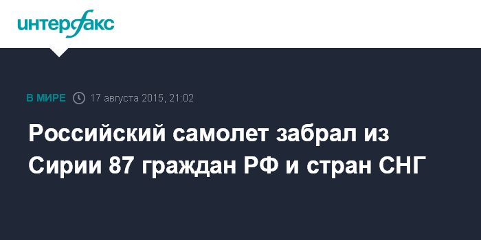 Российский самолет забрал из Сирии 87 граждан РФ и стран СНГ