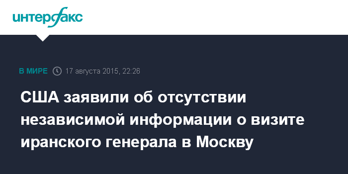 При этом Кирби отметил: "Пока мы не способны независимо подтвердить сообщения о его (Солеймани - ИФ) визите (в Москву - ИФ)".