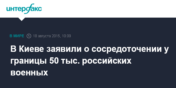 Москва. 18 августа. INTERFAX.RU - Россия разместила до 50 тыс. военных на границе с Украиной "с целью давления", заявил спикер Генштаба вооруженных сил Украины Владислав Селезнев.