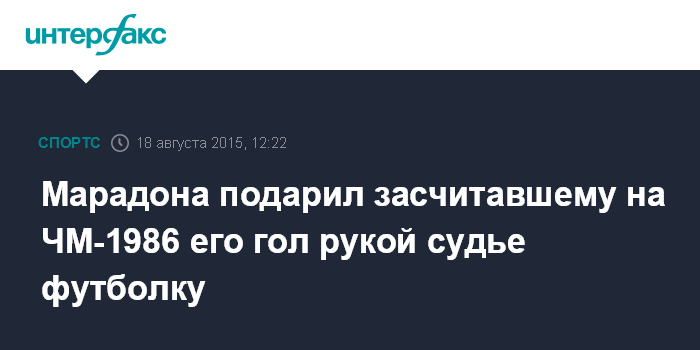 Москва. 18 августа. INTERFAX.RU - Бывший футболист сборной Аргентины Диего Марадона назвал арбитра встречи чемпионата мира 1986 года Англия-Аргентина "другом навеки".