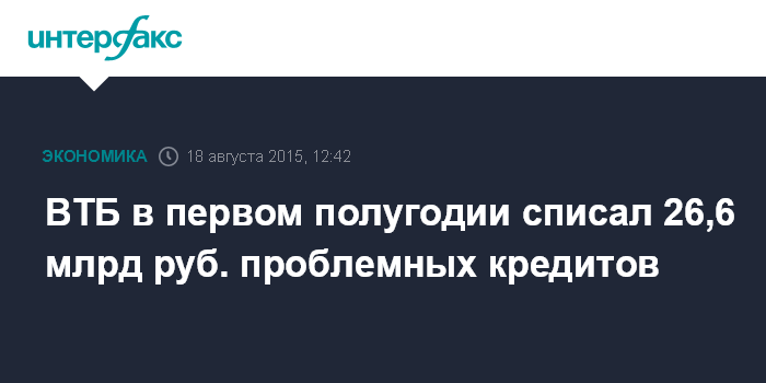 ВТБ в первом полугодии списал 26,6 млрд руб. проблемных кредитов