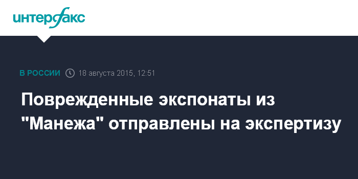 Москва. 18 августа. INTERFAX.RU - Экспонаты, поврежденные в результате инцидента на выставке в "Манеже", направлены на экспертизу в реставрационный центр имени Грабаря, по ее результатам будет принято процессуальное решение, сообщил "Интерфаксу" начальник пресс-службы столичного главка МВД Андрей Галиакберов.