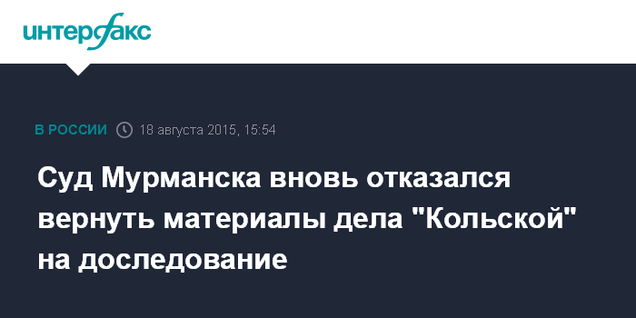 Суд Мурманска вновь отказался вернуть материалы дела "Кольской" на доследование