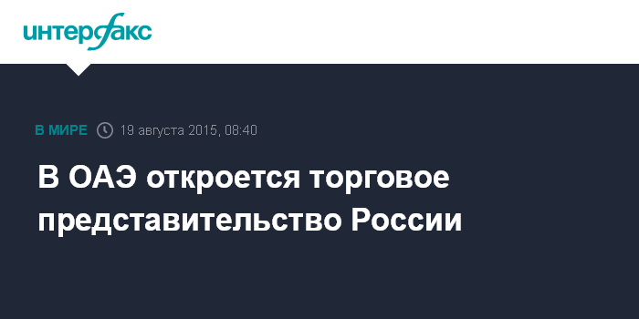 Москва. 19 августа. INTERFAX.RU - Правительства РФ и Объединенных Арабских Эмиратов заключили соглашение об открытии в Абу-Даби торгового представительства России.