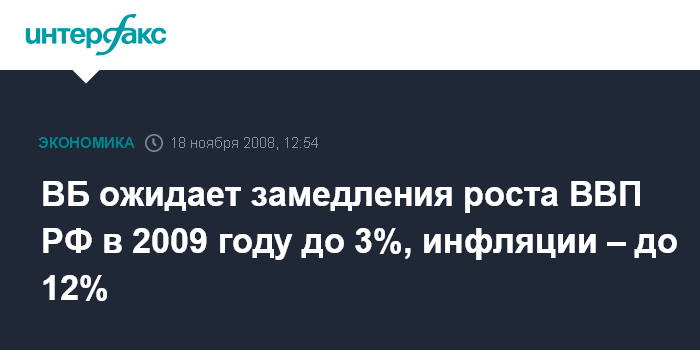 ВБ ожидает замедления роста ВВП РФ в 2009 году до 3%, инфляции – до 12%