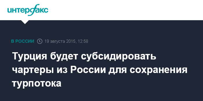 Турция будет субсидировать чартеры из России для сохранения турпотока