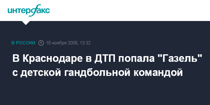 По его данным, дети ехали в Краснодар на соревнования по гандболу из Брюховецкого района края. "Это гандбольная команда, они ехали во дворец "Олимп". ДТП случилось неподалеку от развлекательного центра, расположенного при въезде в Краснодар", - сказал собеседник агентства.
