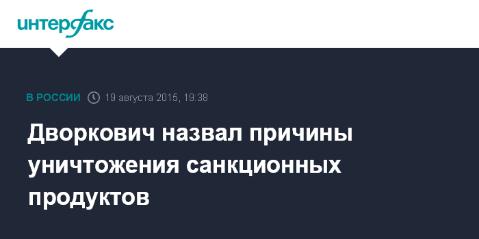 Москва. 19 августа. INTERFAX.RU - Вице-премьер Аркадий Дворкович констатировал, что уничтожать санкционные продукты неприятно, но необходимость этой меры основана на обеспечении безопасности возможных потребителей таких товаров.