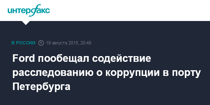 Ford пообещал содействие расследованию о коррупции в порту Петербурга
