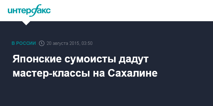 Москва. 20 августа. INTERFAX.RU - Борцы сумо из Японии приехали в Южно-Сахалинск, визит таких гостей проходит впервые в истории Сахалинской области, сообщает пресс-служба областного министерства спорта, туризма и молодежной политики.
