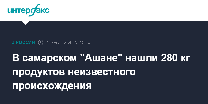 Москва. 20 августа. INTERFAX.RU - Сотрудники самарского управления Россельхознадзора в ходе проверки супермаркета "Ашан" в Самаре выявили более 280 кг продуктов, нелегально ввезенных на территорию России.