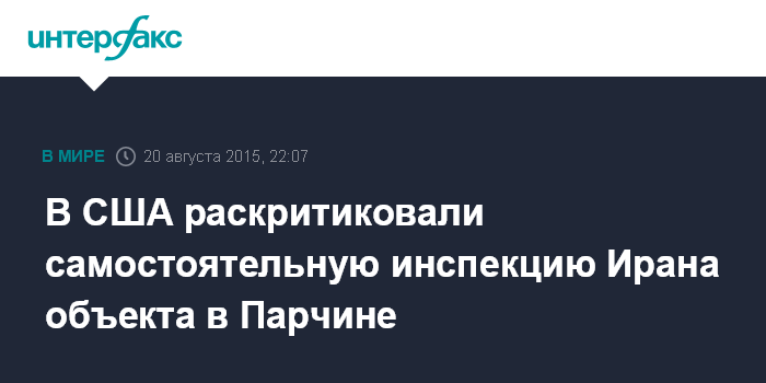 Москва. 20 августа. INTERFAX.RU - МАГАТЭ не следует разрешать Ирану самому осуществлять инспекции своего ядерного объекта в Парчине, заявил в четверг представитель госдепа США Джон Кирби.