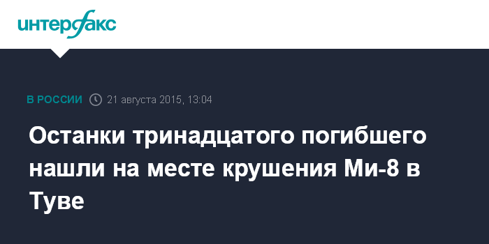 Останки тринадцатого погибшего нашли на месте крушения Ми-8 в Туве