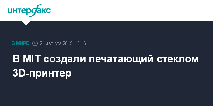 Москва. 21 августа. INTERFAX.RU - Исследовательская группа Mediated Matter совместно с лабораторией стекла Массачусетского технологического университета и институтом Висса разработали 3D-принтер, позволяющий печатать раскаленным стеклом, сообщает издание N+1 cо ссылкой на Mediated Matter.