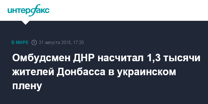Москва. 21 августа. INTERFAX.RU - Омбудсмен самопровозглашенной Донецкой народной республики Дарья Морозова утверждает, что более 1300 жителей региона находятся в плену на украинской территории.