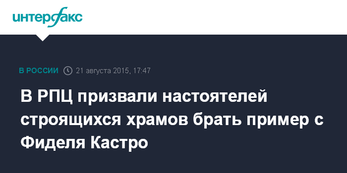 В РПЦ призвали настоятелей строящихся храмов брать пример с Фиделя Кастро