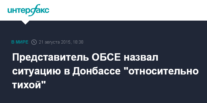 Москва. 21 августа. INTERFAX.RU - Заместитель главы СММ ОБСЕ Александр Хуг отметил снижение напряженности в Донбассе за последние дни.
