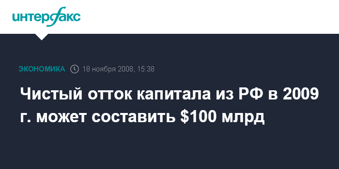 Чистый отток капитала из РФ в 2009 г. может составить $100 млрд