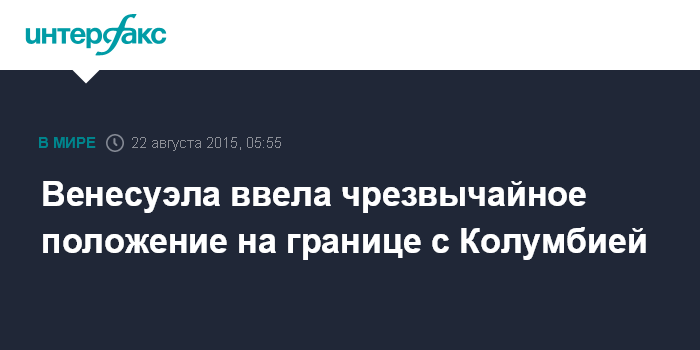 Москва. 22 августа. INTERFAX.RU - Президент Венесуэлы Николас Мадуро объявил чрезвычайное положение в регионе, граничащем с Колумбией, в связи с нападениями контрабандистов, передает BBC News.