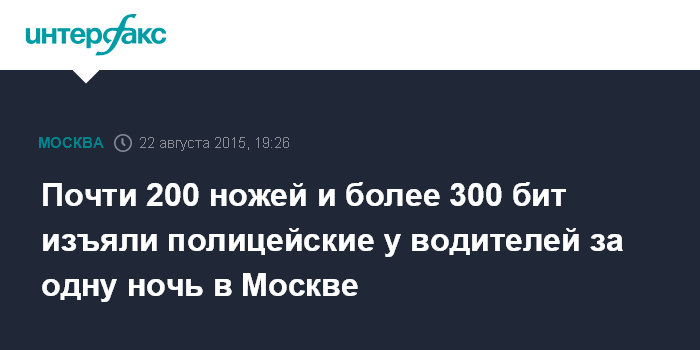 Почти 200 ножей и более 300 бит изъяли полицейские у водителей за одну ночь в Москве