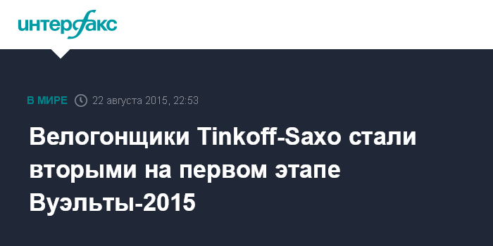 Велогонщики Tinkoff-Saxo стали вторыми на первом этапе Вуэльты-2015