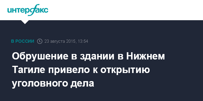 Москва. 23 августа. INTERFAX.RU - Следователи завели уголовное дело по факту обрушения перекрытия в строящемся здании в Нижнем Тагиле, сообщает пресс-служба СК РФ по Свердловской области.