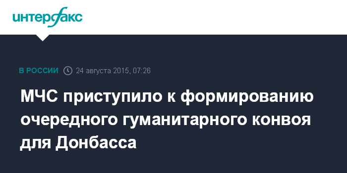 Москва. 24 августа. INTERFAX.RU - МЧС России приступило к формированию 37-й автоколонны с гуманитарной помощью для Донбасса, большую часть груза в которой в преддверии нового учебного года составят учебники, сообщили "Интерфаксу" в пресс-службе МЧС.