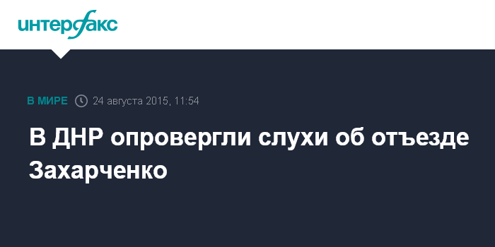 Москва. 24 августа. INTERFAX.RU - В самопровозглашенной Донецкой народной республике опровергли сообщения о том, что её глава Александр Захарченко якобы уехал из Донецка.