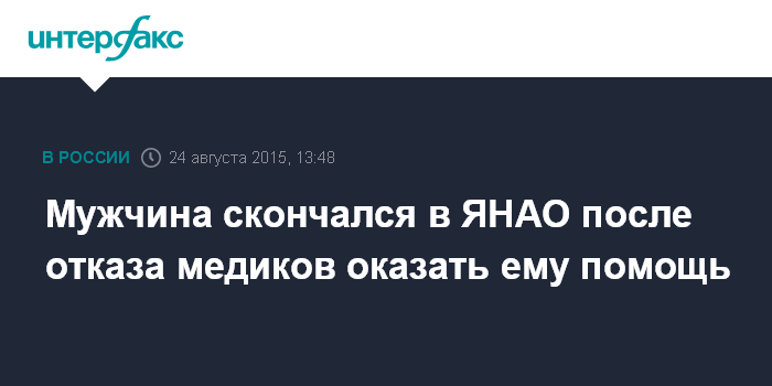 Мужчина скончался в ЯНАО после отказа медиков оказать ему помощь