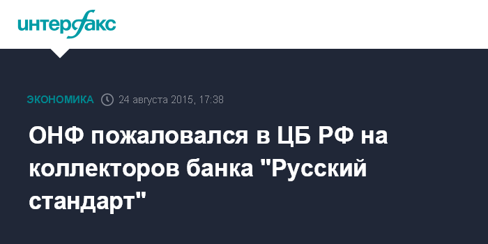 ОНФ пожаловался в ЦБ РФ на коллекторов банка "Русский стандарт"