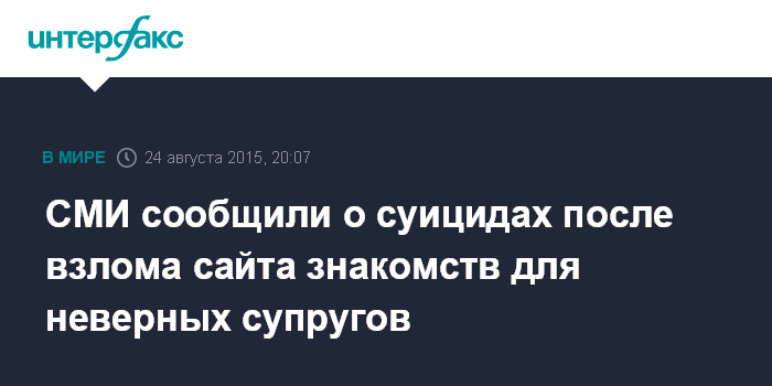 СМИ сообщили о суицидах после взлома сайта знакомств для неверных супругов