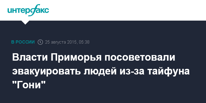 Ранее сообщалось, что в Приморье объявлено штормовое предупреждение в связи с приближением тайфуна "Гони". Они принесет с собой очень сильные дожди, которые будут сопровождаться сильными порывами ветра, на побережье до 30 м/с.