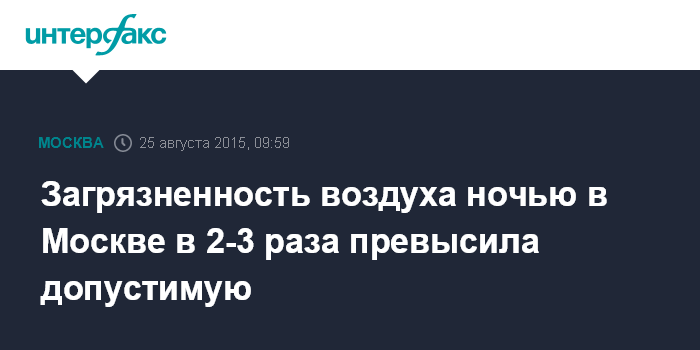 Москва. 25 августа. INTERFAX.RU - Станции ГПБУ "Мосэкомониторинг" ночью зафиксировали превышения нормативов загрязняющих веществ в атмосфере на юго-востоке и востоке Москвы.