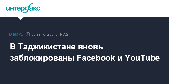 Москва. 25 августа. INTERFAX.RU - Таджикские интернет-провайдеры и мобильные операторы заблокировали доступ к соцсети Facebook и видеохостингу YouTube по решению Службы связи при правительстве республики, сообщили "Интерфаксу" во вторник представители компаний.