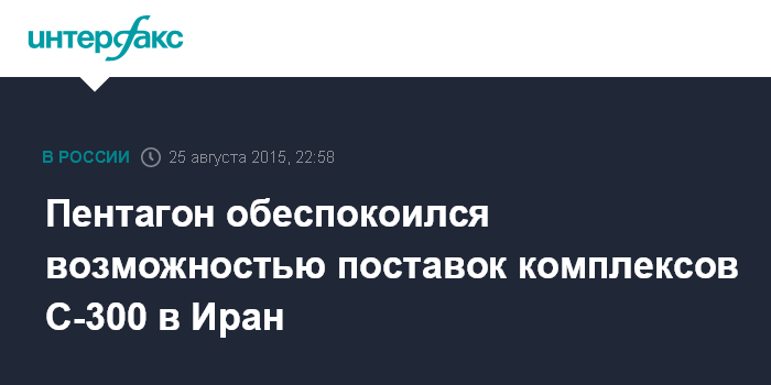 Москва. 25 августа. INTERFAX.RU - В США с обеспокоенностью отнеслись к возможности заключения сделки по поставке Россией Ирану ракетных комплексов С-300.
