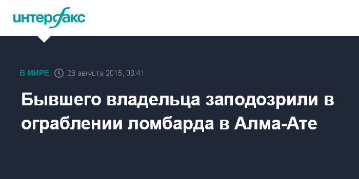Москва. 26 августа. INTERFAX.RU - В Алма-Ате двое мужчин совершили вооруженное ограбление ломбарда, сообщила пресс-служба городского департамента внутренних дел (ДВД).