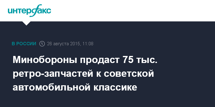 "Реализации подлежат запчасти для советских "легковушек бизнес-класса" ГАЗ-21 (первая "Волга"), ГАЗ-24 (вторая "Волга"), ГАЗ-69 ("Козлик") и микроавтобусов производства Рижской автобусной фабрики", - сказано в сообщении управления пресс-службы и информации Минобороны России, которое поступило в "Интерфакс" в среду.