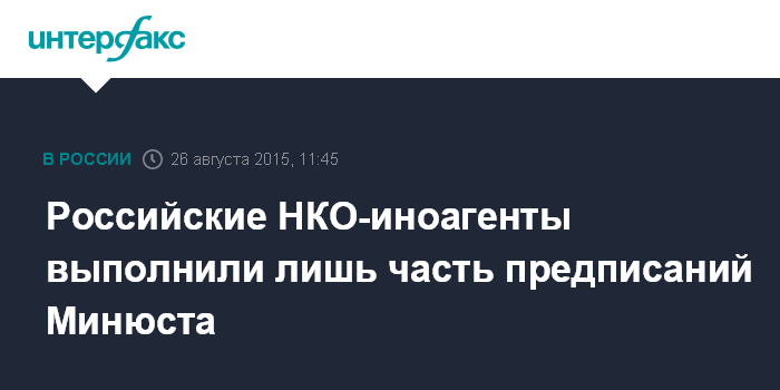 Москва. 26 августа. INTERFAX.RU - Ряд некоммерческих организаций (НКО) - иностранных агентов, которых Минюст России в июле предупреждал об административной ответственности за нарушение федерального законодательства, устранили нарушения, другие намерены и дальше отстаивать свои права.