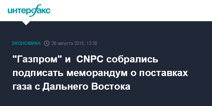 "Газпром" и CNPC собрались подписать меморандум о поставках газа с Дальнего Востока