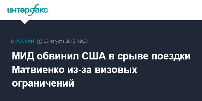 Москва. 26 августа. INTERFAX.RU - МИД РФ обвинил американские власти в срыве поездки председателя Совета Федерации Валентины Матвиенко в США на мероприятия по линии Парламентского союза.