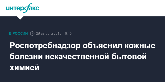 Москва. 26 августа. INTERFAX.RU - Глава Роспотребнадзора Анна Попова заявила, что за последнее десятилетие число людей, страдающих болезнями кожи, увеличилось на четверть, одна из причин - некачественная бытовая химия.